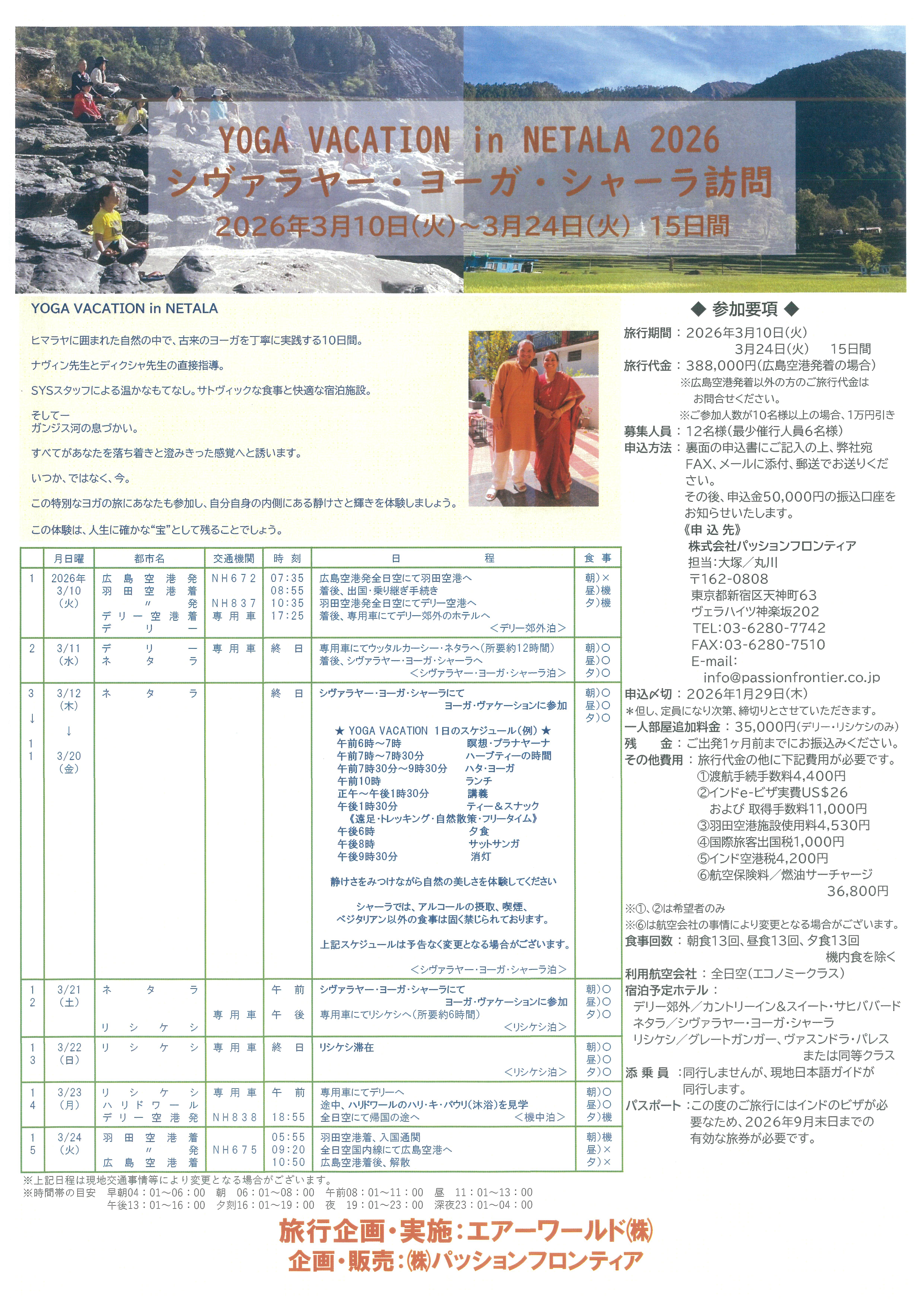 この特別なヨガの旅にあなたも参加し、自分自身の内側にある静けさと輝きを体験しましょう。この体験は、人生に確かな“宝”として残ることでしょう。